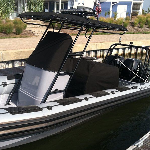 T-Tops are a sleek and functional upgrade for center console boats, providing durable overhead protection without compromising visibility or deck space. Built with a sturdy metal frame and a fabric or hard top, T-Tops offer shade from the harsh sun, a mounting point for lights, antennas, and rod holders, and a place to store life jackets or gear overhead.