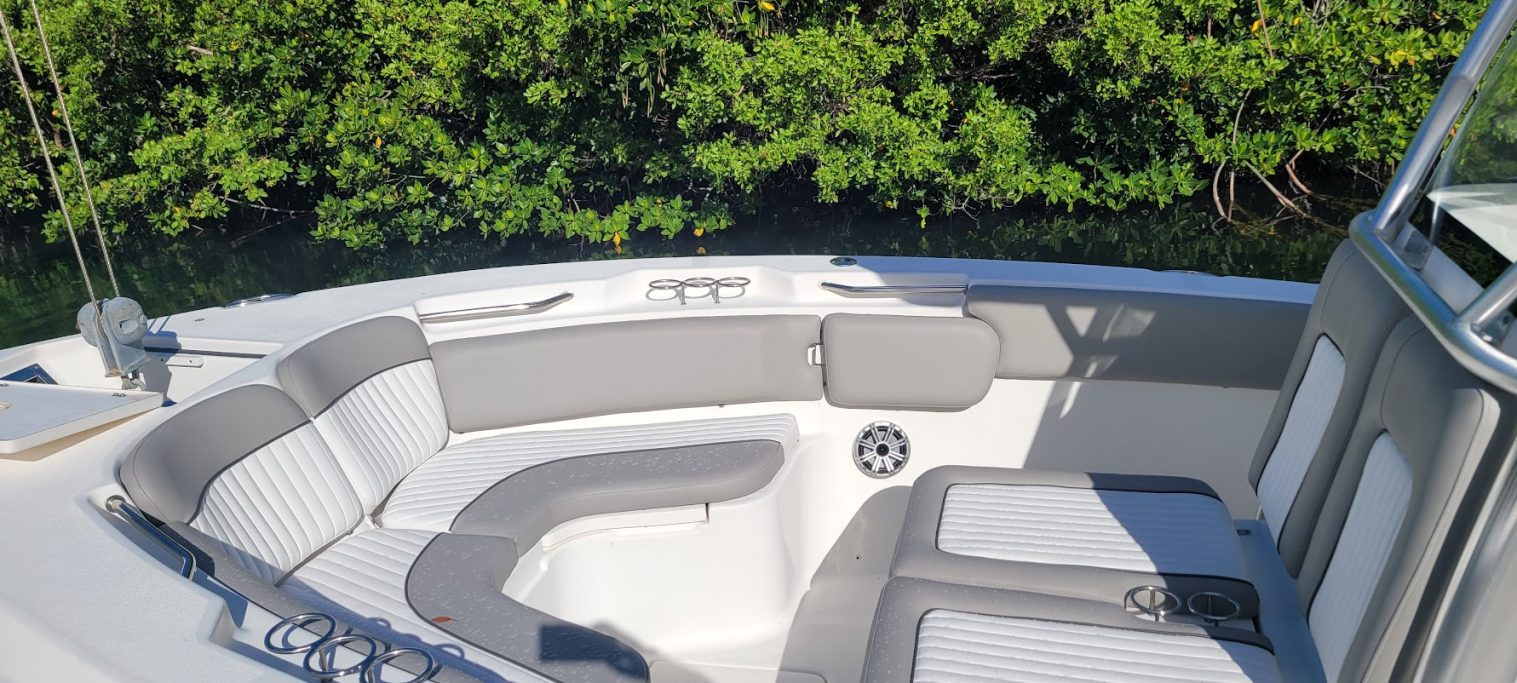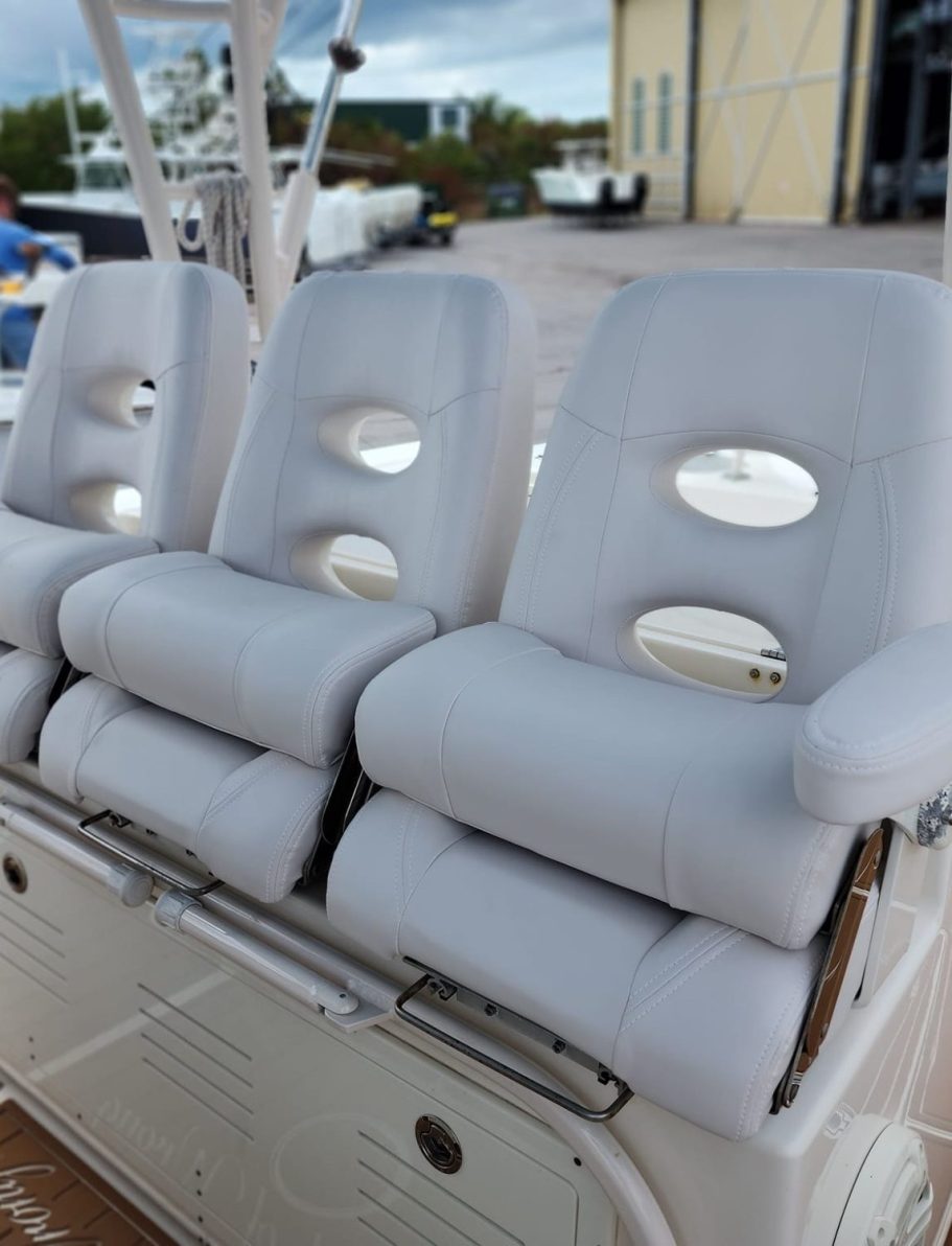 At A1A Canvas, we use Sunbrella Horizon® marine vinyl, which is not only soft and luxurious but also engineered to resist UV rays, mildew, and microbial pinking-perfect for the demanding Florida Keys climate. Upgrading your boat's upholstery is one of the best ways to enhance both comfort and style on the water. New upholstery, especially when paired with fresh high-density marine foam, provides better support, improved durability, and a noticeably more comfortable ride. Reupholstering your seating gives your boat a clean, modern look, and with a wide range of colors, textures, and custom design options, it's the perfect opportunity to personalize your space and elevate the overall aesthetic.